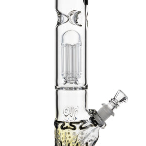 Beside size, the other elements that make up the shape of a beaker bong make a difference too. A beaker bong generally has a better filtration system than a straight bong because of its larger base. When smoke hits the water in a bong, some of it heats and turns into water vapor, which makes your hit much smoother. More bubbles = more filtration, which means you’ll probably be getting a smoother hit with a regular beaker bong than you would a regular straight bong because of a beaker’s ability to create more bubbles and hold more smoke. Another addition that helps filtration within a beaker bong is a percolator. Percolators are glass extensions that are built inside of a piece to create extra laters of filtration. There are several different types of percolators, like the inline, honeycomb, showerhead, and tree, to name a few. They all have different shapes and mechanisms, but generally exist to create more bubbles and vapor for the smoothest hits possible. It’s really up to trial and error figuring out which perc works best for you, but the rule is usually that the more percs there are involved, the better the smoke.