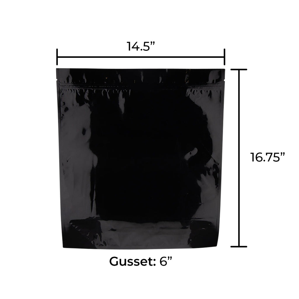 Secure, stylish, and functional — these Tamper Evident Glossy Black Vista Mylar Bags are the ultimate packaging solution for cannabis brands and retailers. Measuring 14.5" x 17" and built to hold up to 448 grams (1 pound), these smell-proof mylar bags feature a sleek glossy black back paired with a clear vista front panel for a perfect product display.