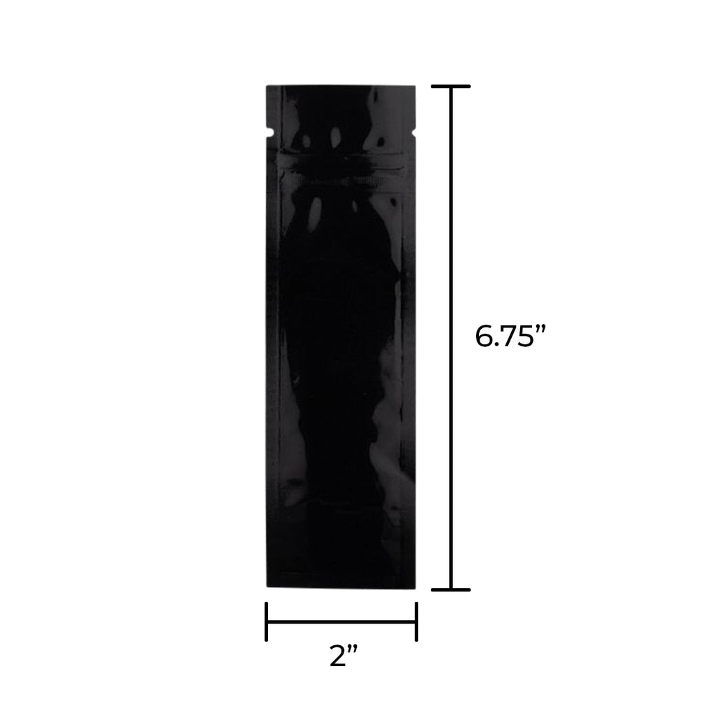 Secure your premium pre-rolls with our Tamper Evident Glossy Black Vista Mylar Bagsโspecially designed for professional cannabis packaging. Measuring 2" x 6.75", these sleek black bags feature a clear vista window for visible branding and effortless product display. Made from durable, smell-proof mylar, they maintain product freshness while offering tamper-evident protection for compliance and peace of mind.