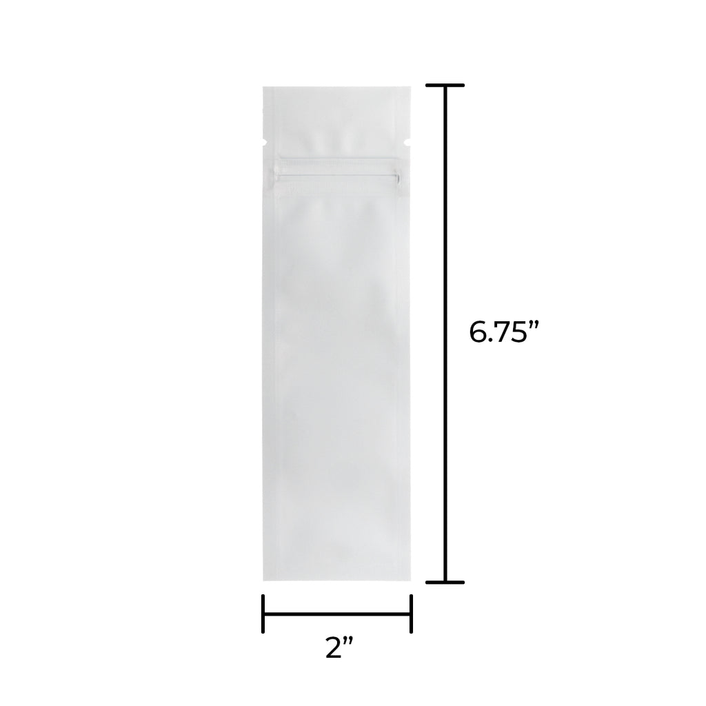 Secure your premium pre-rolls with our Tamper Evident Matte White Vista Mylar Bags—specially designed for professional cannabis packaging. Measuring 2" x 6.75", these sleek white bags feature a clear vista window for visible branding and effortless product display. Made from durable, smell-proof mylar, they maintain product freshness while offering tamper-evident protection for compliance and peace of mind.