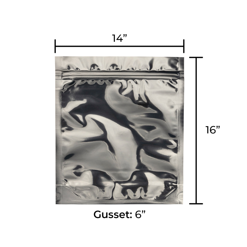 Secure, stylish, and functional — these Tamper Evident Silver Vista Mylar Bags are the ultimate packaging solution for cannabis brands and retailers. Measuring 14.5" x 17" and built to hold up to 448 grams (1 pound), these smell-proof mylar bags feature a sleek silver back paired with a clear vista front panel for a perfect product display.