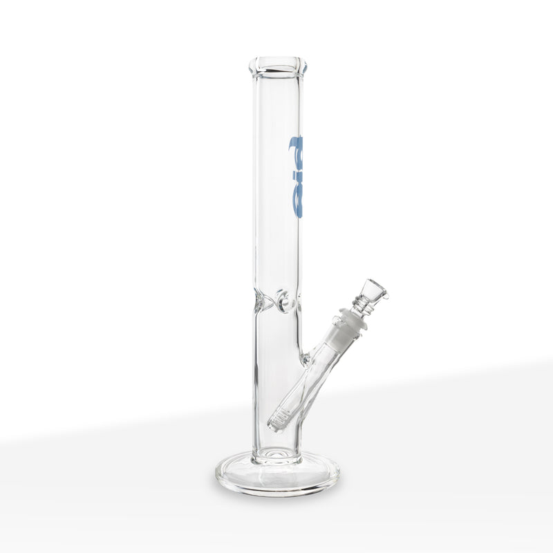 This glass on glass water pipe is 12" tall with a straight design base. The simple indent design allows it to catch ice for cooler and smoother hits and easier handling.