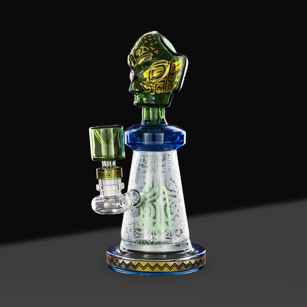 This glass water pipe features a stable beaker base and a tapered neck for comfortable handling and consistent airflow. The standout feature is the tribal-inspired etched design wrapping around the beaker body, creating depth and texture that instantly separates it from standard clear glass pipes. The etched surface adds a high-end, handcrafted feel that appeals to customers looking for something more elevated than entry-level water pipes.