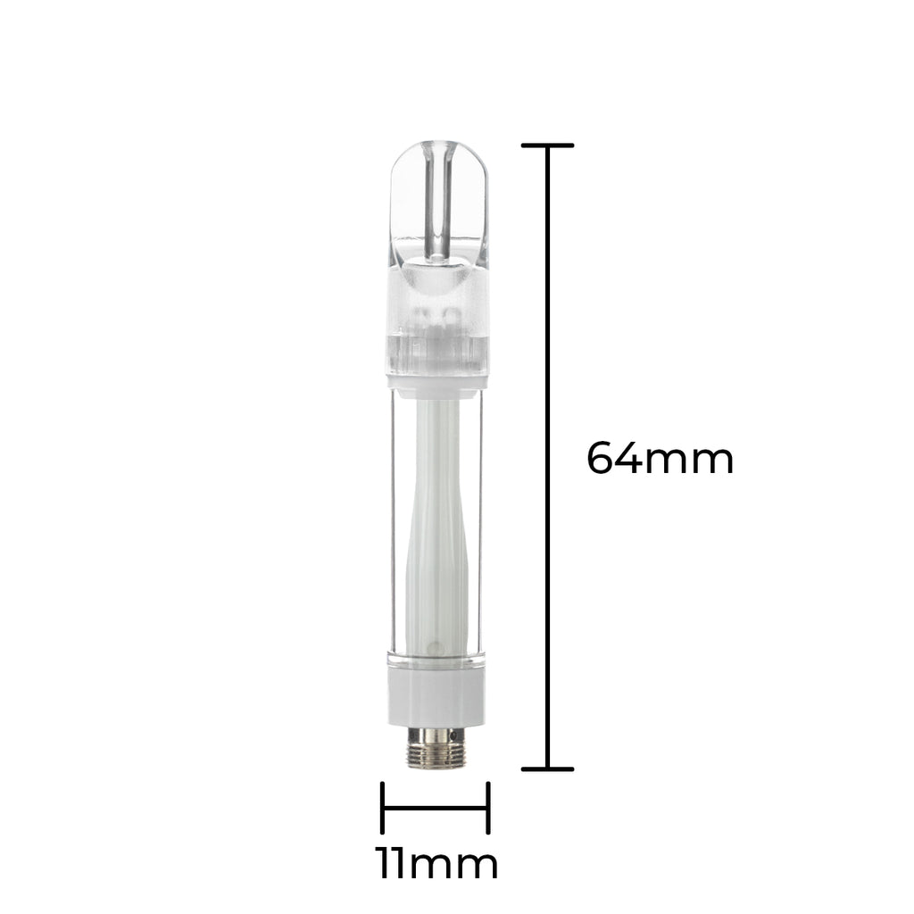 Made with industry preferred full-ceramic coil and center post. Featuring a secure push-down locking mechanism, this cartridge ensures child resistance and prevents leaks, making it ideal for both retail shelves and discerning vape brands. These cartridges deliver pure flavor and superior heat resistance, ideal for thick oils and distillates.