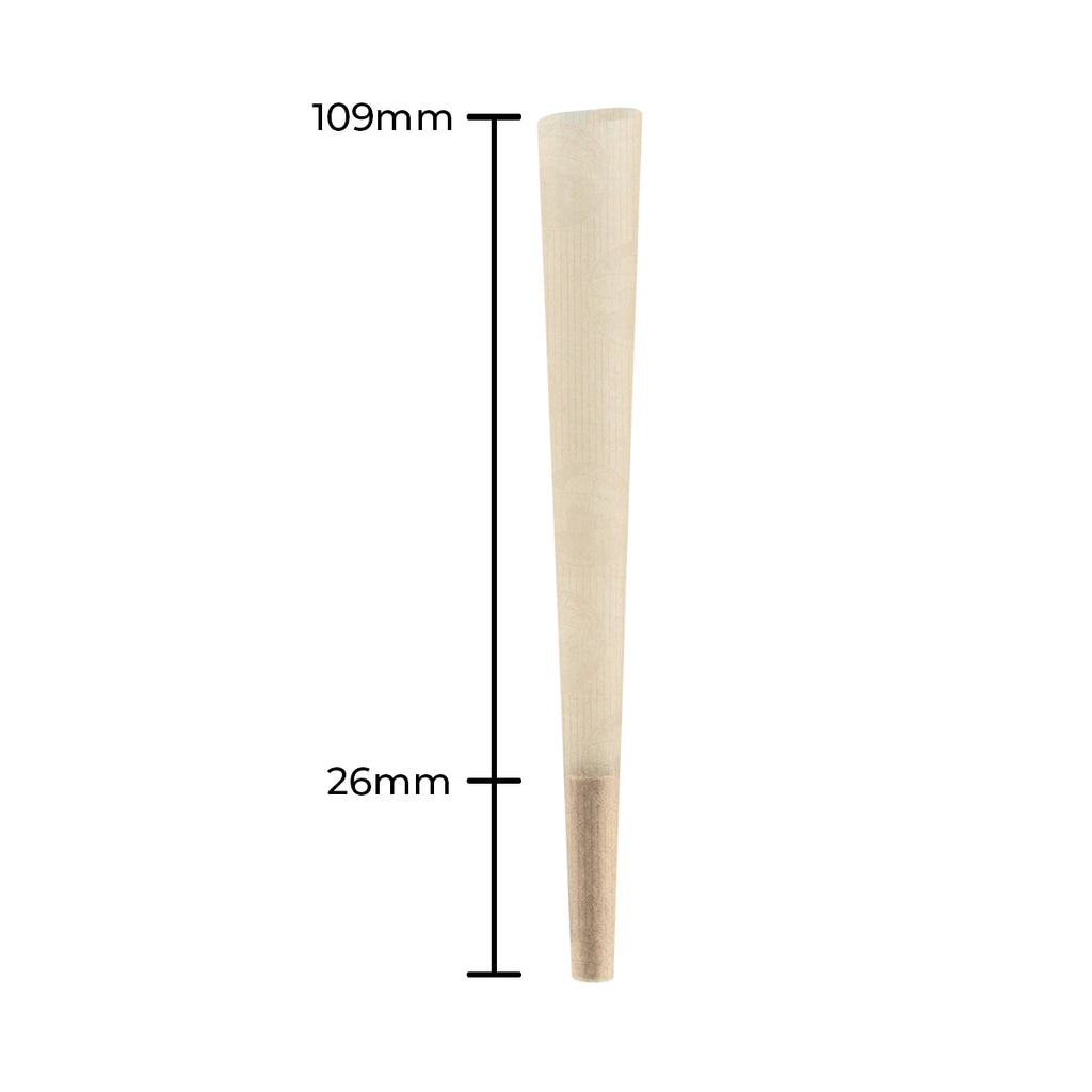 - 109mm Length – 109mm cone with a 26mm crutch is a standard size for pre-rolls 1.0 to 1.3 grams.