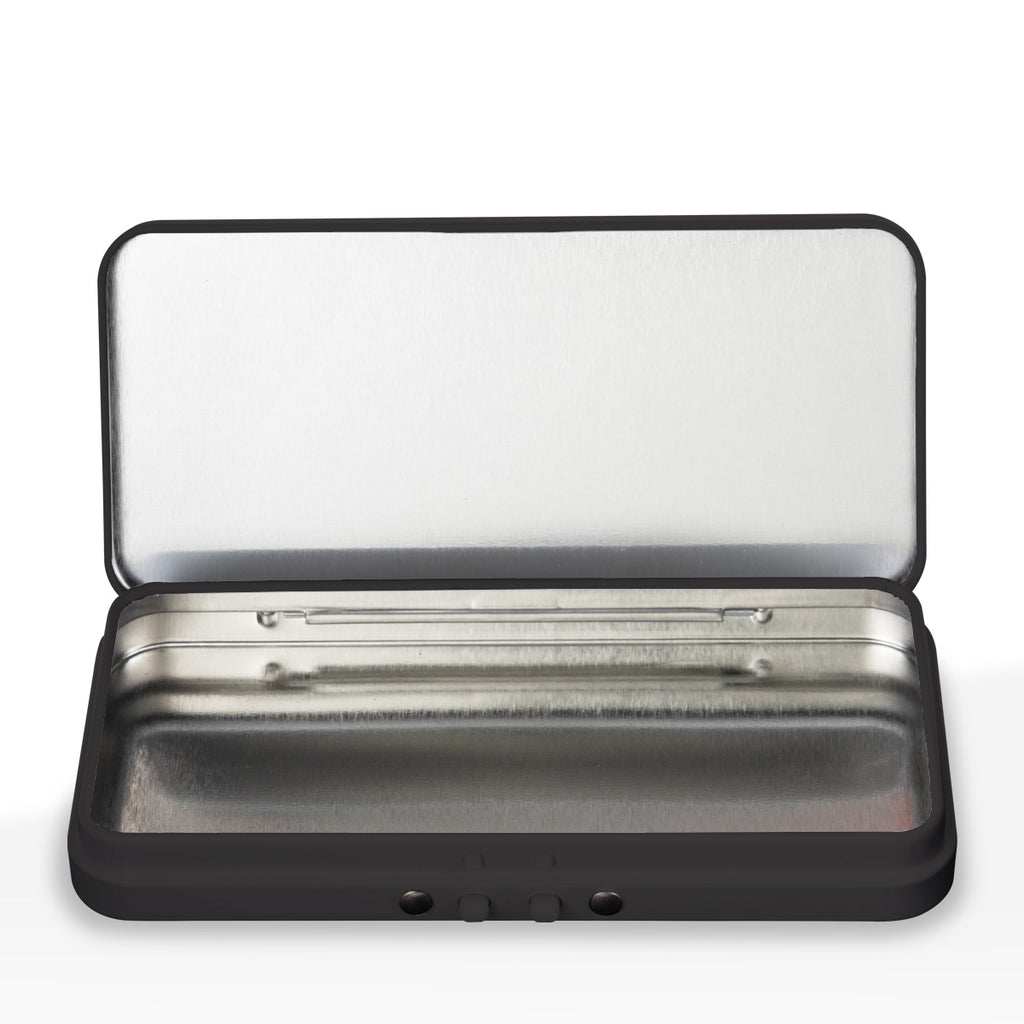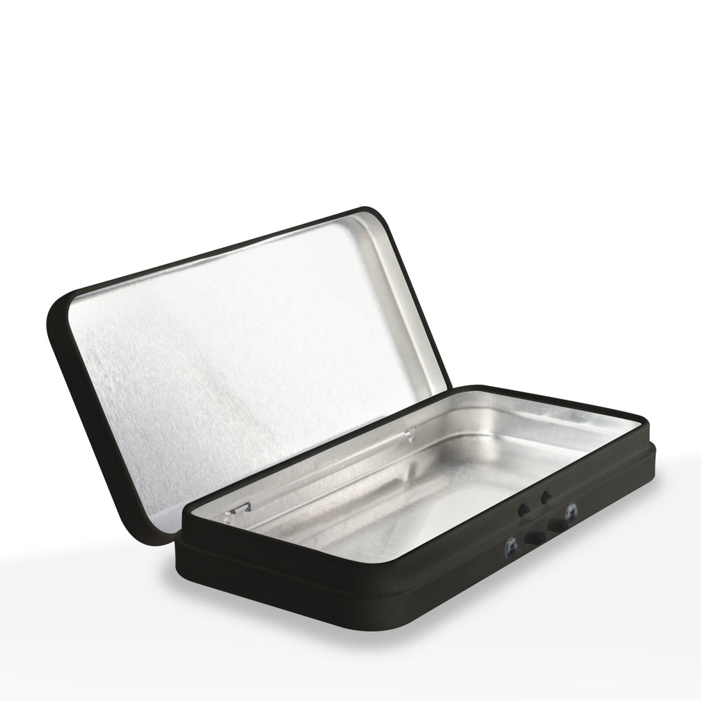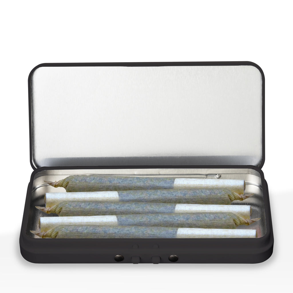 Crafted from durable metal with a sleek matte-black finish, this container offers both long-lasting protection and a polished retail-ready appearance. The child-resistant design ensures compliance with strict state packaging regulations, while the silicone-lined, air-resistant lid preserves freshness and potency — an essential feature for pre-roll multipacks, edibles, and infused confections.