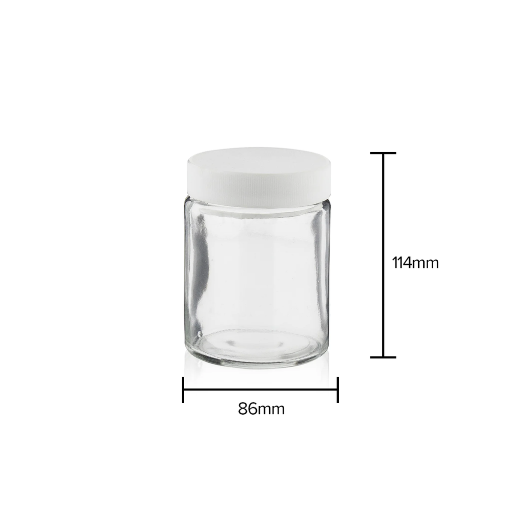 These 18oz Straight Sided Clear Glass Jars with White Ribbed Plastic Caps offer a clean, professional packaging solution for bulk cannabis products, edibles, dry herbs, and more. Made with durable, crystal-clear glass, these jars are designed for high visibility and easy branding with custom labels. The included white ribbed plastic caps provide a tight, reliable seal to maintain freshness and prevent odors from escaping.