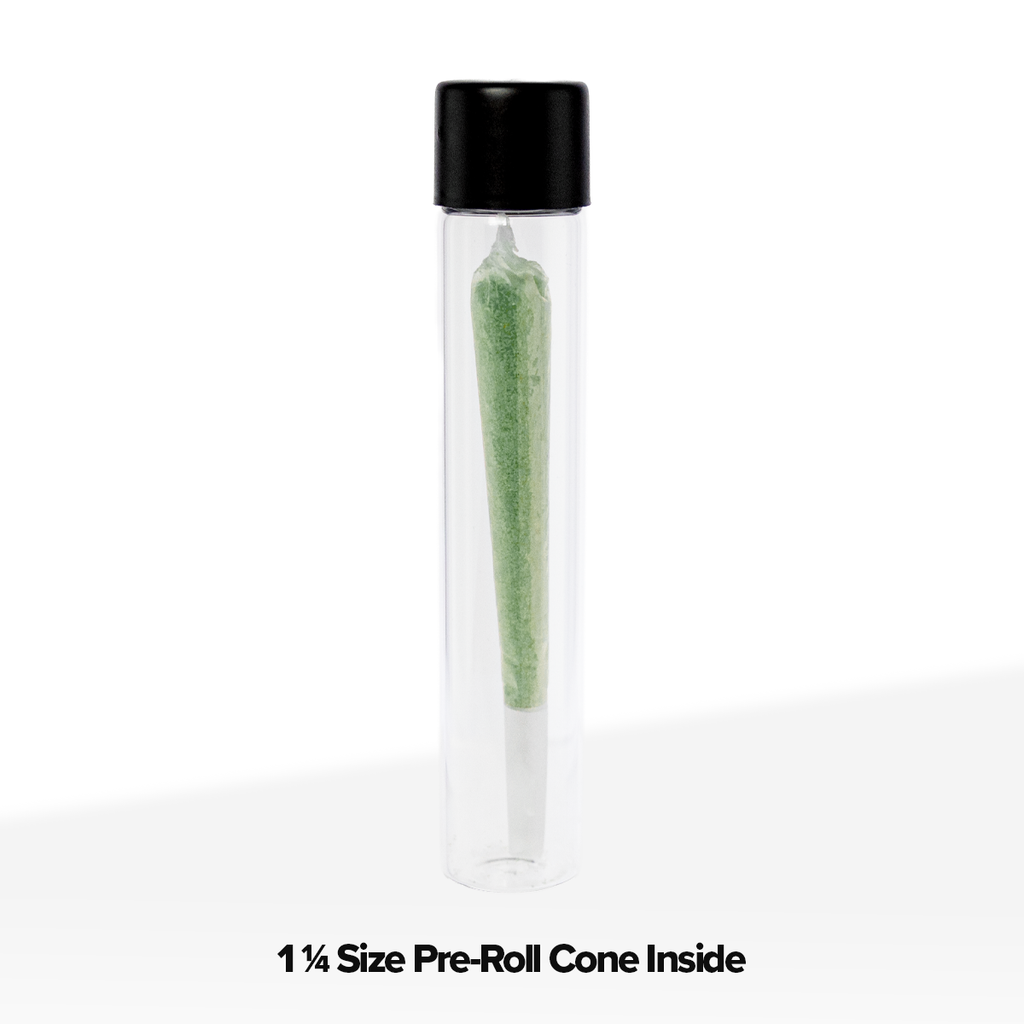 These glass vials are a standard size for prerolls that are made from king size rolling papers.