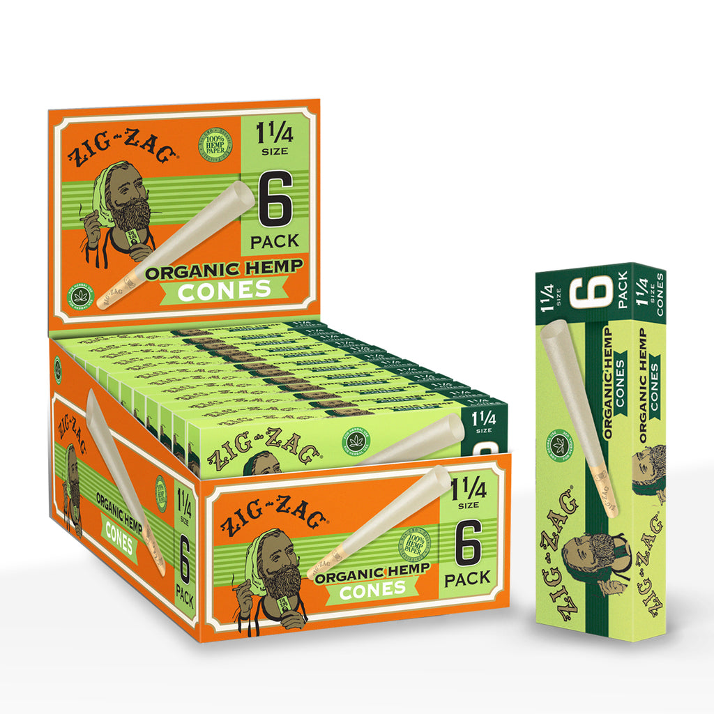 • 1¼ Size Pre-Rolled Cones – 6 cones per pack, 24 packs per display box