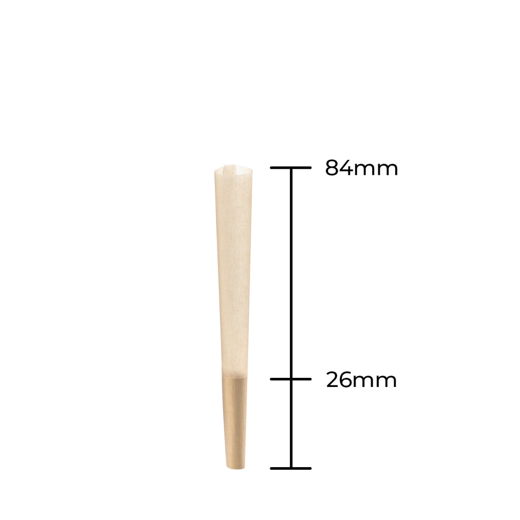 - 84mm Length – 84mm length with a 26mm crutch is a standard size for pre-rolls 0.5 to 0.7 grams.