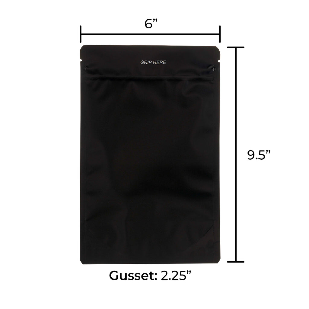 These Matte Black Mylar Bags come in a bulk pack. Each bag also has have a tear notch cut into both sides above the zipper seal to provide convenience to customers opening your product.