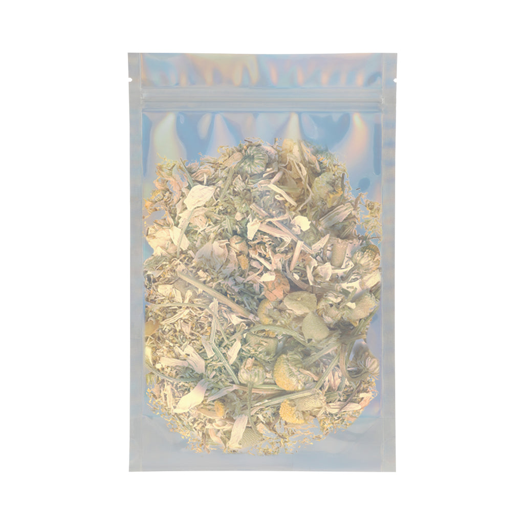 Display your premium cannabis products with confidence with these 1-ounce Holographic Mylar Bags. These high-barrier bags feature a clear window panel to showcase your flower or infused products while maintaining a colorful holographic exterior. Designed to hold up to 28 grams of cannabis, these smell-proof bags are tamper-evident with a tear notch and compatible with heat sealing machines for added security and freshness.