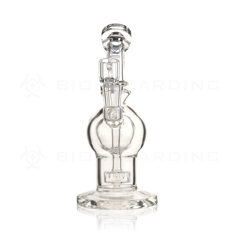 This new BIO Glass dab rig stands 9 inches tall with a matrix percolator, slightly bent neck, and a chamber within a chamber. This piece comes with a quartz banger.